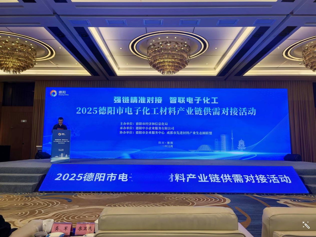 12月4日下午,以“强链精准对接 智联电子化工”为主题的2025德阳市电子化工材料产业链供需对接活动举行。活动由德阳市经信局主办,副市长王洪出席并致辞,成绵眉德四地各方相关代表共计100余人参加活动。